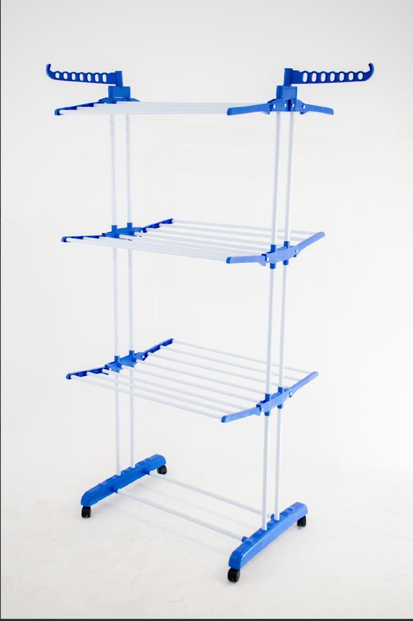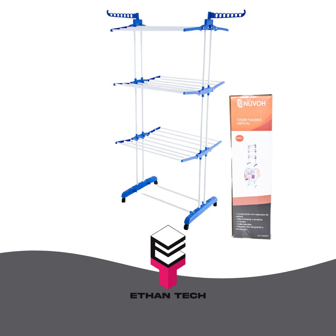 Descubrí la máxima eficiencia y versatilidad para el secado de tu ropa con este tendedero vertical premium de 3 niveles. Su diseño optimizado y reforzado, en una combinación de blanco y azul, te permite aprovechar al máximo el espacio, ofreciendo una gran capacidad para todo tipo de prendas, incluso las más delicadas.